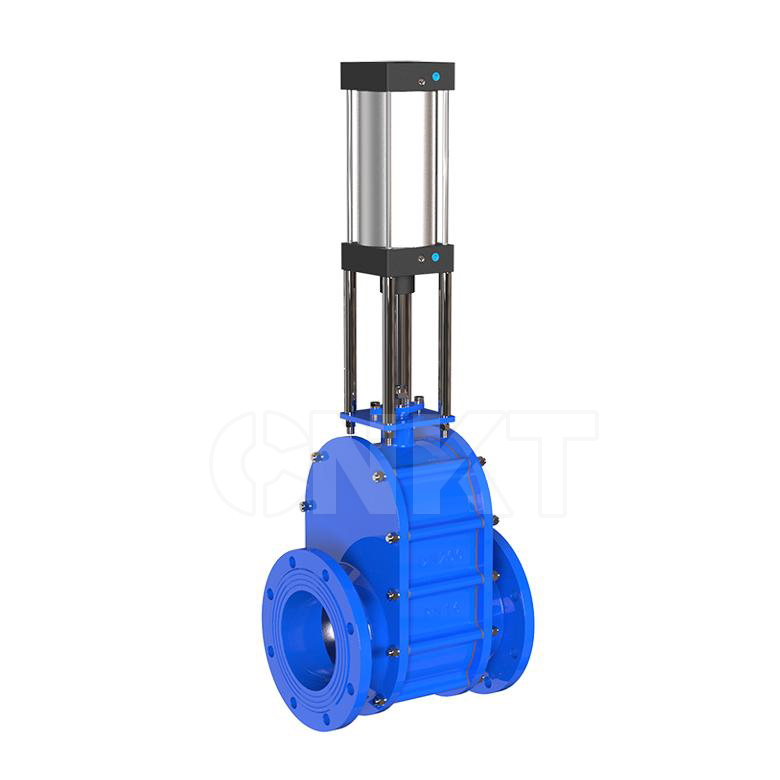 電動雙閘板閥當氣源從上進氣口通入時,閥桿帶動閥板向下運動,閥門關閉。當氣源從下進氣口通入時,閥桿帶動閥板向上運動,閥門開啟。閥板與閥座之間加載彈簧,彈簧彈力始終使閥板壓向閥座保證閥門的密封性,又容許閥板在垂直上下方向移動,這有助于補償閥門零件的熱脹冷縮,并能克服任何背壓變化對密封的影響與防止顆粒介質進入兩密封面之間。在啟閉過程中,閥板能產生自轉,使得密封面之間產生研磨、拋光作用,而且由于閥體對通道偏心,在開啟排卸物料時,會產生渦流,形成的物料旋渦會自行清掃閥門內腔。氣動陶瓷雙閘板閘閥為雙閘板單密封,獨特的下閥體斜面設計,保證閥門內腔不積灰。所有的這些特點,使得氣動陶瓷雙閘板閘閥具有超長的使用壽命,為您的系統安全運行提供了可靠的保證。